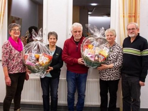Geehrt wurden für 25 Jahre Mitgliedschaft Elfriede und Hans Erhardt, Doris Harder und Jörg Harder. Jörg Harder ist leider verhindert. Dietmar Mayer bedankte sich bei den drei Anwesenden, verlas die Urkunden und steckte die Ehrennadeln an. Ilse Mayer überreichte an Doris Harder einen Geschenkkorb und an das Ehepaar Erhardt einen Geschenkkorb und einen Gutschein. Jörg Harder bekommt die Urkunde und einen Gutschein nachgereicht.
